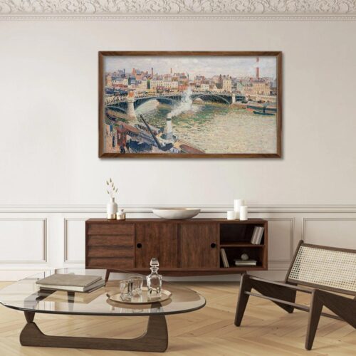 Модель характеризуется стильным дизайном с минимальными рамками (frameless), что способствует созданию эффектного визуального восприятия и органично вписывается в любой интерьер. Цвет корпуса — черный, что подчеркивает современный стиль и элегантность устройства.