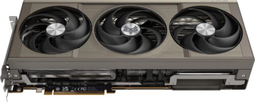 Видеокарта оснащена активной системой охлаждения Tri-X с тремя осевыми вентиляторами и тепловыми трубками, которая эффективно поддерживает оптимальную температуру даже при интенсивных нагрузках и максимальной частоте GPU в режиме Boost 2700 МГц. Конструкция системы охлаждения занимает четыре слота расширения, что нужно учитывать при выборе корпуса. Особенностью модели является магнитная задняя панель, которая усиливает жесткость и способствует лучшему отводу тепла.